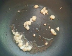 锅内下油下蒜头炒香;