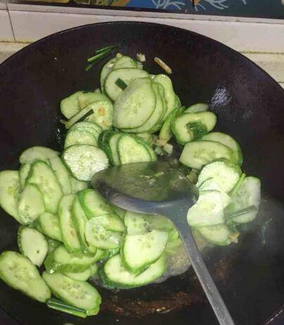 油热了先把葱蒜爆出香味黄瓜下锅。