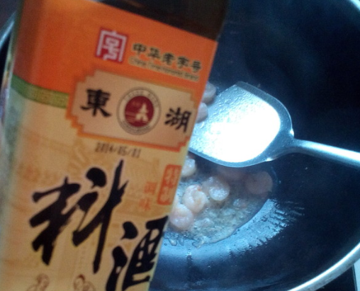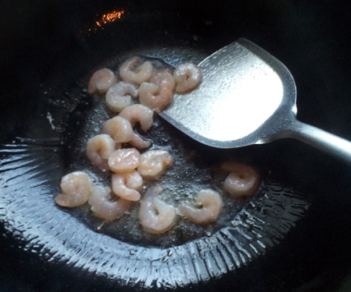 锅里油热加入虾仁滑油;