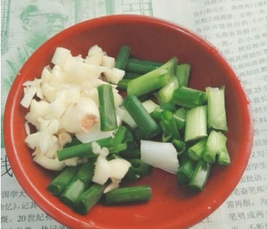 大蒜和香葱处理好放在一个小碟子里备用;