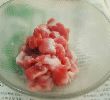 猪肉切成片,放蚝油、生粉、鸡粉、盐搅拌一下腌五分钟;