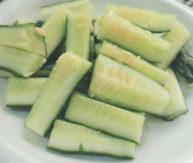 黄瓜洗一下,再切成块备用;