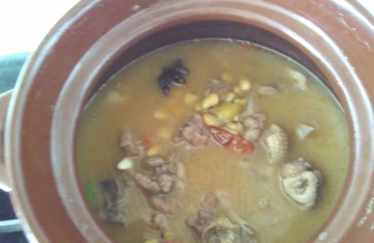 将锅中所有材料装入瓦罐中,先用大火焖至沸腾,改用小火熬煮约半小时或更久,装盘。