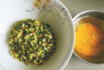 槐花洗干净控水,鸡蛋去壳搅拌成鸡蛋液;