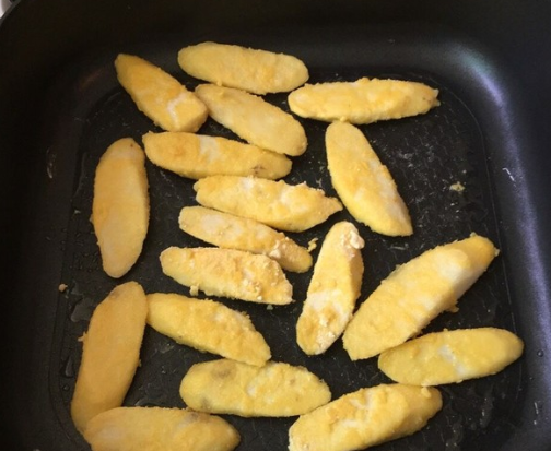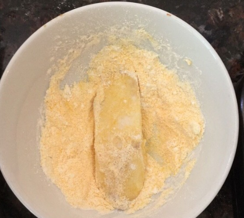 将淮山片沾上混合粉;