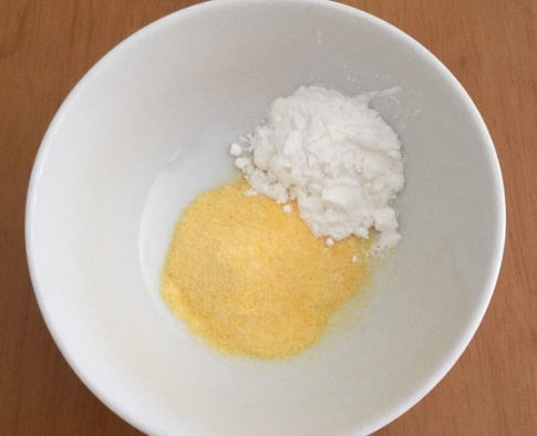 用碗盛出生粉和玉米粉,混合均匀;