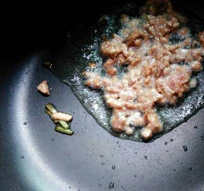 肉切末,先炒姜蒜。