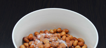 用吸油纸垫底,趁热将椒盐晒在花生米上即可;