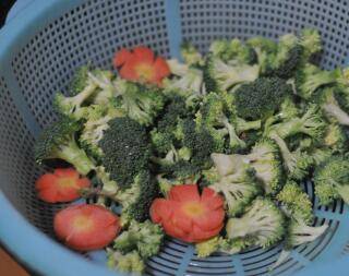 西兰花用手掰成小朵,胡萝卜切成薄片。