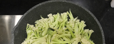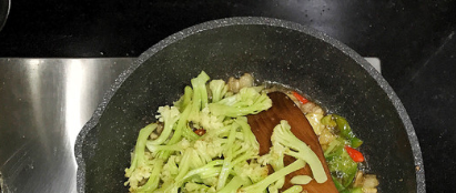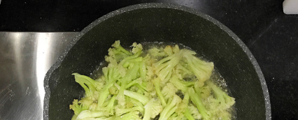 然后将花菜倒进锅内,加入调味料,稍微翻炒即可;
