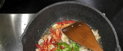 加入大蒜爆香;