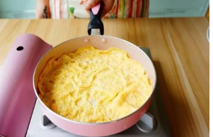 2、先将鸡蛋摊成蛋饼,起锅切成三角片;