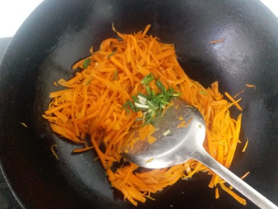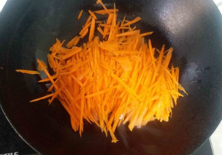 将胡萝卜切丝炒更容易炒至软烂。