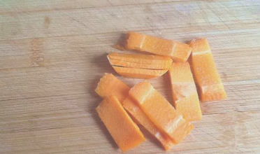 将胡萝卜、洋葱切成片和条备用。