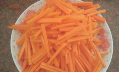 胡萝卜切片后切丝儿。