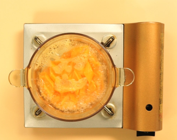 起锅清水煮沸倒入胡萝卜,焯水30秒;