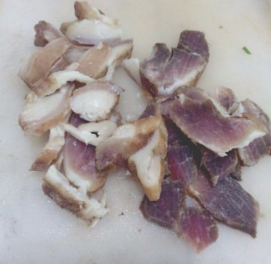腊肉切片。