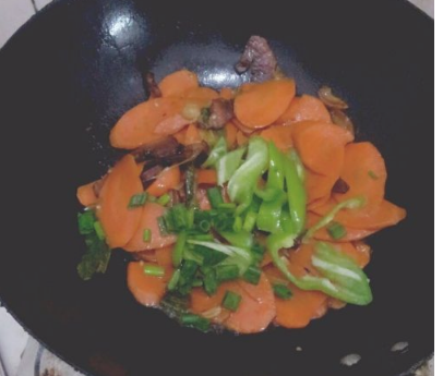 倒入胡萝卜,翻炒片刻。