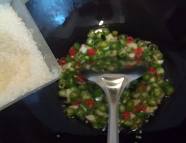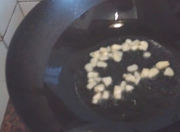 热锅凉油,把蒜片放入爆出香味。
