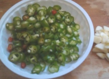 青红椒切小段,蒜子切片备用。
