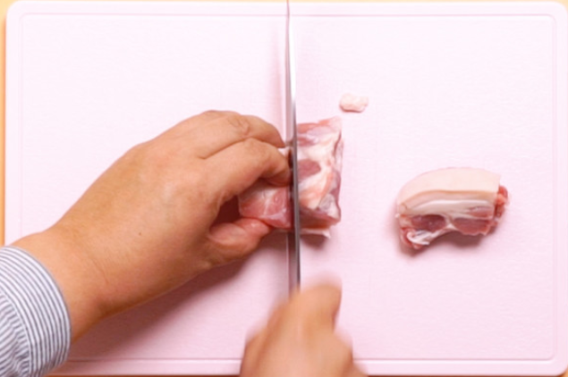 食用油5ML,放入姜丝,倒入五花肉,翻炒均匀;