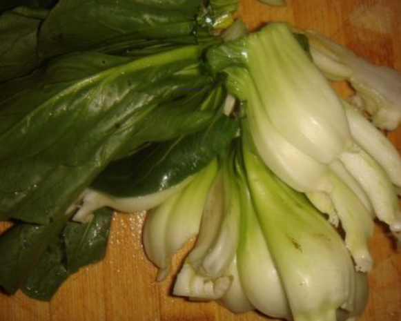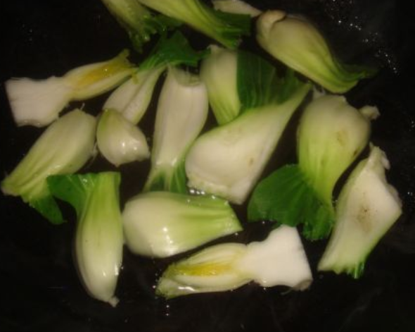 青菜洗干净,并从中间切短;