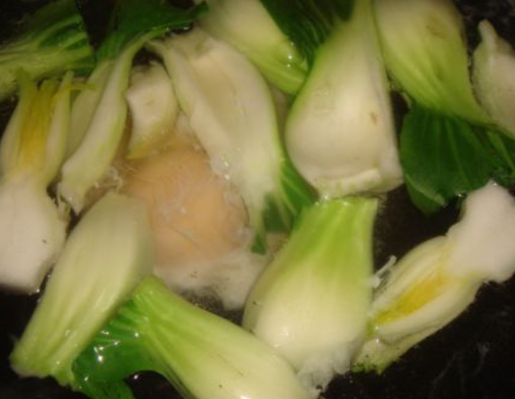 再将青菜叶子加进去烧一分钟;