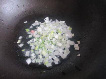 最先把锅里放花生油,放入葱花爆出香味。
