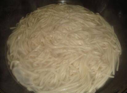 准备一锅热水把面条加入。