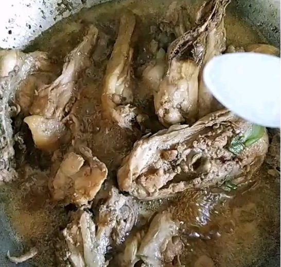 鸡骨架下锅,加料酒老抽,生抽;