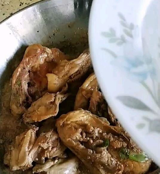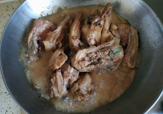 准备食材:鸡骨架500克、生抽一勺、料酒一勺、老抽适量、大蒜适量、葱适量、五香粉适量。