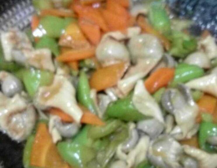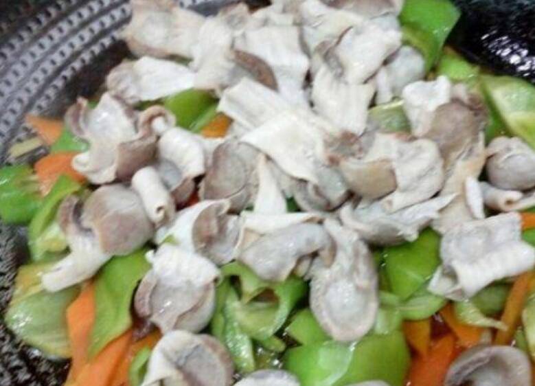 尖椒炒鸡肚的主料:鸡肚350克,胡萝卜1根,尖椒3个,生抽2勺,精盐适量,黄酒1勺,白糖1小勺,葱半棵,姜2片,水淀粉2勺,香油几滴。