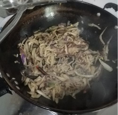 然后转小火,用筷子尝试菜的味道,若觉得味道合口味,则关火,用铲子铲到盘子里就可以食用啦。
