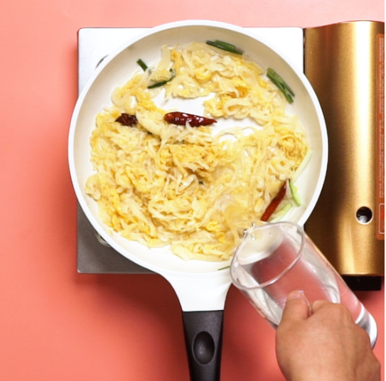 两分钟后加水加肉,放入盐等调料后大火炖十五分钟即可出锅装盘。