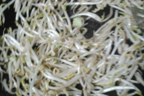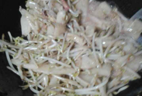 准备食材:咯吱250克、豆芽菜、盐适量、腐乳一块、鸡精适量、油适量、葱适量。
