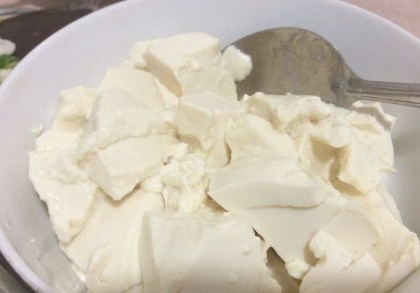 嫩豆腐用清水冲洗干净,用勺子划成任意小块;