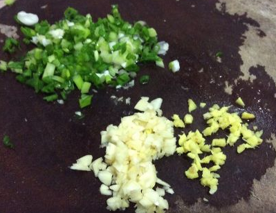 葱洗净切成葱花;姜、蒜去皮切细剁碎;