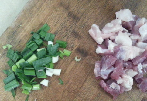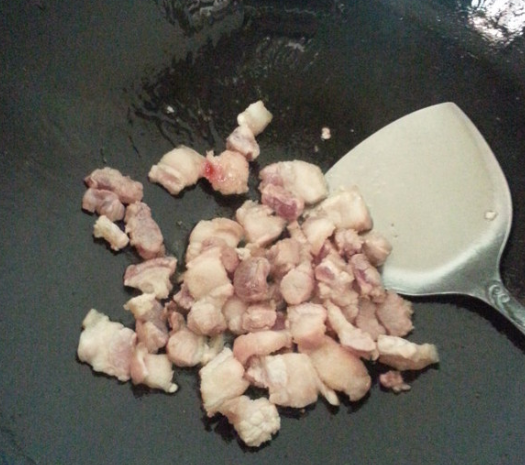 熟时水干,倒入西芹和蒜苗翻下即可。