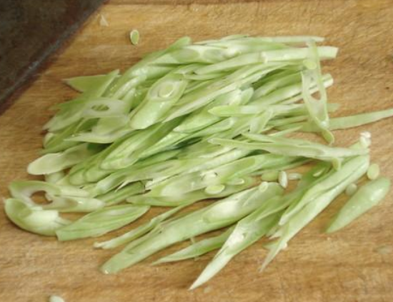 柴米豆洗净去掉两头,切成丝。