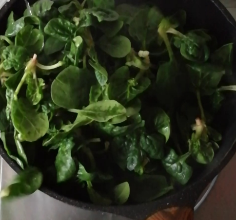 菠菜略微变软,即可加盐,翻炒。