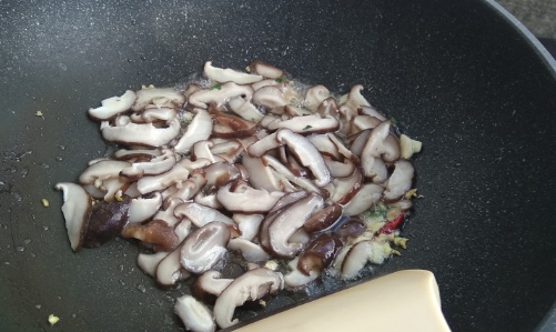 放入已焯水之后的香菇翻炒均匀;