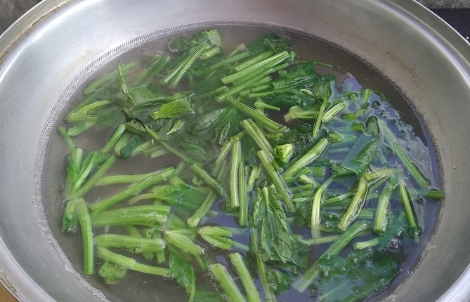 关火后利用开水把菠菜顺便烫一下;