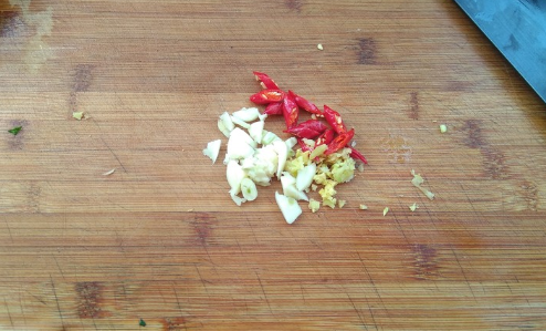 蒜切片,辣椒切圈,姜切末备用;