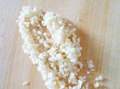 准备两颗蒜瓣,去皮,剁成蒜末。