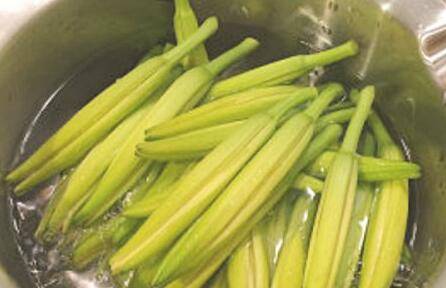 先将金针花洗干净,并用水浸泡1个小时以上。