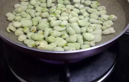 锅里倒入清水烧开,调入适量油、盐,再放入蚕豆焯水;