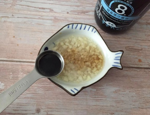 蒜蓉里加六月鲜8克轻盐特级原汁酱油、糖、水淀粉调成碗汁;