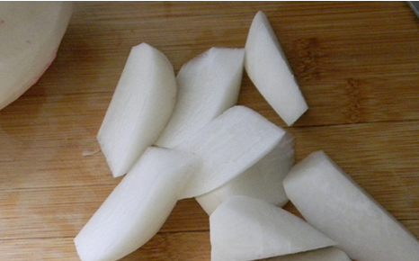准备原料,将萝卜洗净,切滚刀块;
