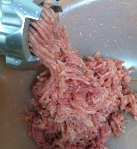 用料:猪肉250g、猪肠衣适量、玉米淀粉25g、盐、黑胡椒粉、五香粉、料酒、老抽、白糖、红曲米粉。