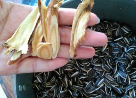 准备食材:葵瓜子1000g、甘草片6片、盐100g水适量。